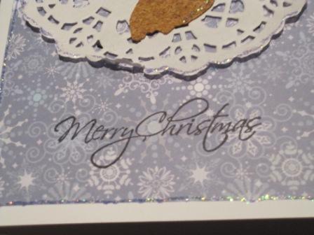 Både matte, doily og krondyr har fået en smule lyseblå stickles til lige at give lidt effekt.